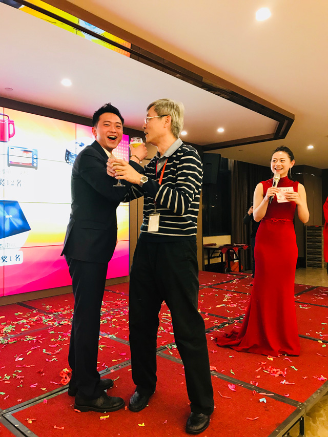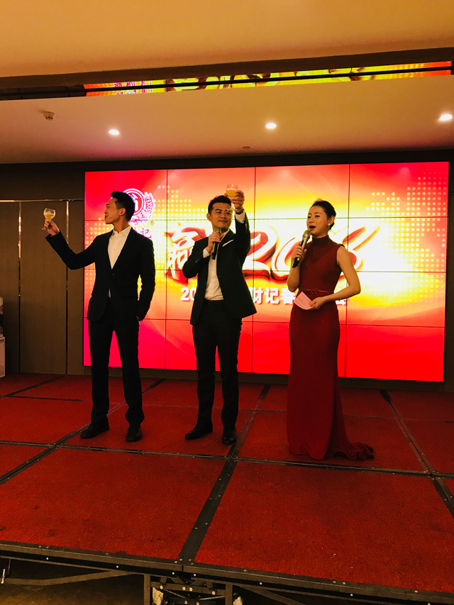 3月1日翁財記春酒會在翁英治、翁英敏兩位副總熱情洋溢的致辭中正式拉開帷幕。在翁財記這個大家庭(高管、員工、家屬、嘉賓)中,大家歡聚一堂,舉杯同慶,共祝翁財記事業蒸蒸日上,狗年旺旺旺!!!一路同行、感恩有你,翁財記評選了8位具有代表的優秀員工。在這炫麗的燈光,耀眼的舞臺上,多才多藝的小伙伴們唱歌、跳舞、猜謎語、玩游戲,十八般武藝樣樣精通。緊張的抽獎環節更是將整場晚會推向高潮。在這個放飛夢想的夜晚,讓我們燃燒所有熱情,去創造更加嶄新的未來。